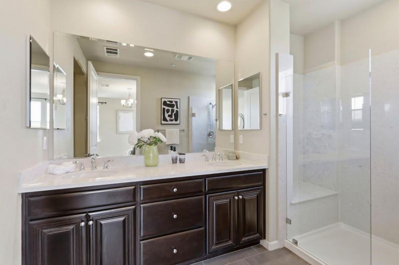 Bright and spacious end-unit townhouse in desirable Las Palmas! Built in 2014 by Summerhill Homes, this 3BD/2.5BA tri-level home offers ~1,851 sq ft of light-filled living space in a quiet, private location. Open floor plan with balcony, featuring a gourmet kitchen with granite countertops, stainless steel appliances, large island with seating, and walk-in pantry. Engineered wood floors throughout and separate laundry room. Elegant primary suite with walk-in closet and dual-sink vanity; custom closet organizers in all bedrooms. Dual-zone A/C & heating. Community amenities include gym, private park, BBQ area, and clubhouse. Resident-only access gate near unit. Prime locationwalking distance to shopping, dining, parks, tennis center, and library; close to downtown Sunnyvale and Sunnyvale Caltrain Station. Easy commute to major tech employers. Top-rated Cumberland Elementary School (buyer to verify).