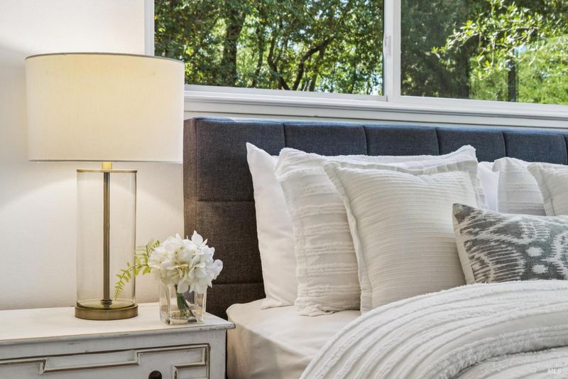Tucked against open space in the serene Ignacio Creek community, this exceptional end-unit lives like a single-family home with the space, privacy, and natural surroundings that are nearly impossible to find at this price point. Fresh interior paint throughout and new carpet in the bedrooms make this one truly move-in ready. The tri-level layout makes perfect sense: an attached two-car garage on the ground level leads up to the heart of the home, where soaring ceilings, a fireplace, and an open living and dining area set the tone. The updated kitchen opens to a private patio with peaceful tree and nature views your own quiet outdoor retreat. The top level offers two additional bedrooms with new carpet and a full bath. The end-unit position delivers extra light and tranquility, and the open space backdrop is yours to enjoy. Community amenities include a pool, tennis courts, and scenic walking paths. The HOA covers landscaping, roofing, building insurance, and exterior maintenance. Minutes to Indian Valley College, hiking and biking trails, golf, shopping, dining, grocery stores, and the farmers market with easy access to Highways 101 and 37.