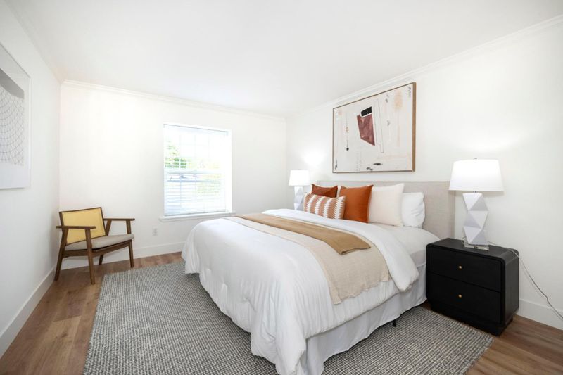 Light and bright 1 bed, 1 bath top level condo welcomes you home! Updated, featuring newly installed LVP flooring throughout. Dual pane windows. Wonderful floor plan with large bedroom and walk-in closet with built-in organizers. Spacious bathroom with double sinks, marble surround, and designer fixtures. Sunny balcony with partial view of the hills. Secured underground reserved parking with storage cabinet. Loads of community features including 3 swimming pools and a tennis court. Professionally managed HOA ensures the complex is well-cared for and regularly upgraded. A short stroll to vibrant Castro Street and San Antonio Center; close to public transit, major employers, shopping, and more!