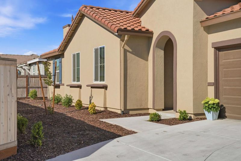 A beautiful 2024 build Spanish-style home located in Hughsons new KB community is ready for new owners. This home highlights personalized modern comfort with the best elements in mind. You will love how the white cabinetry, countertops, and flooring design come together. The great room flows into a well-appointed kitchen with a walk-in pantry and a central island. Breathtaking 9-ft. ceilings and a wide entry hallway create an open, airy, and luxurious atmosphere that feels welcoming. It is built with efficiency in mind! This home features WaterSense® fixtures, Low-E windows, a smart thermostat, an electric water heater, and a Whirlpool® appliance package. The primary suite offers a generous walk-in closet with ample storage. Additional features include a dedicated indoor laundry room highly desirable for convenience and keeping organized. Outdoor enthusiasts will love nearby parks and iconic destinations like Yosemite National Park. Close to planned parks, schools, and downtown conveniences. Modesto is just 10 minutes away and Turlock 13 minutes from shopping, dining, and entertainment. In close proximity to Hwy. 99. MAKE THIS HOME YOURS AND LOVE WHERE YOU LIVE!