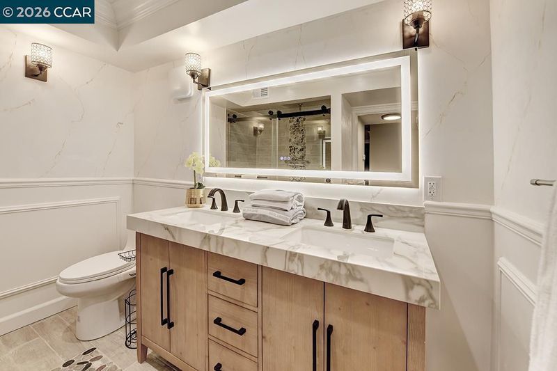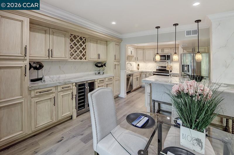 Where else can you find this level of design, space, and location for under $600,000? Move right into this , beautifully remodeled Sonoma Model with exceptional care and attention to detail. Classic charm meets modern comfort with elegant wainscoting, rich engineered hardwood floors, and sleek porcelain countertops anchoring the open-concept kitchen. Enjoy a dual-zone wine fridge and a Samsung 65" TV already mounted for effortless living. The remodeled primary bath offers a dual vanity, walk-in shower with waterfall head and custom bench, plus a fog-free beauty mirror with adjustable lighting. The guest bath features the same timeless, high-end finishes. A fully enclosed balcony provides flexible bonus space—perfect for an office, reading nook, or art studio. Ideally located just steps from the Hillside Clubhouse, with convenient access to the pool, lawn bowling, and more.