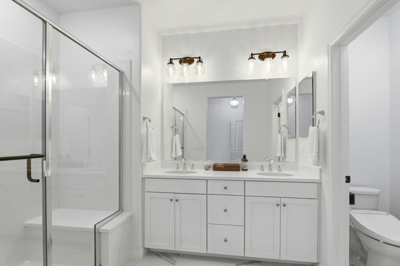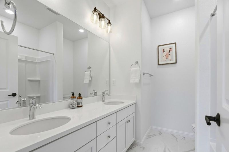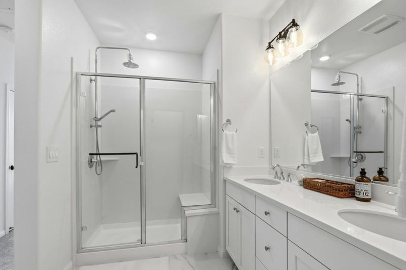 - Bidet, Double Sinks, Half on Ground Floor, Primary - Stall Shower(s), Shower and Tub, Shower over Tub - 1, Solid Surface, Tile, Updated Bath
