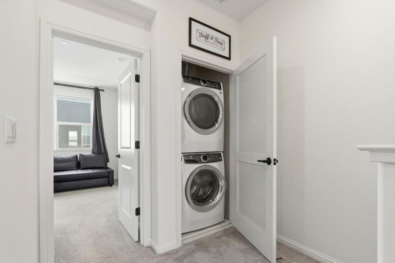 - Dryer, Electricity Hookup (110V), Gas Hookup, Inside, Upper Floor, Washer, Washer / Dryer