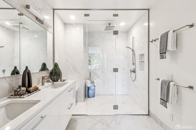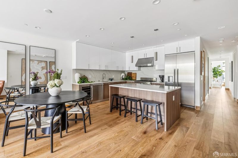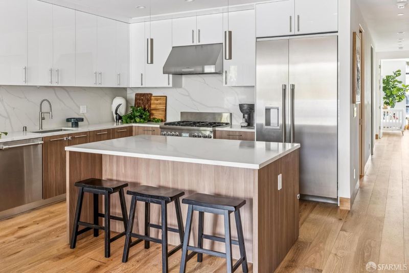 This stunning 3-bedroom, 3-bathroom new construction home, built in 2021 and spanning 1,721 square feet, redefines San Francisco luxury with impeccable design and an unparalleled sense of space. From the moment you arrive, the experience is effortless; a private keyed elevator opens directly into your sun-drenched, air-conditioned, open-concept living space, where European Oak flooring stretches underfoot and wall-to-wall windows soar to dramatic ceilings, flooding every room with natural light. Designer lighting, recessed fixtures, and thoughtful finishes complete the picture at every turn. At the heart of the home is a showstopping chef's kitchen that will impress even the most discerning home-chef. A full commercial-grade Thermador appliance package, beverage refrigerator, quartz countertops and backsplash, sleek designer cabinetry, and an extraordinarily large center island with built-in undercounter microwave make this kitchen as functional as it is breathtaking. The kitchen flows seamlessly into the home's living/dining area, an elegant setting for intimate dinners and lavish entertaining alike. Glass sliders open from the living space onto your expansive private walkout deck; an entertainer's paradise and urban retreat in equal measure. The primary suite is a true sanctuary, featuring towering windows, a spa-inspired bathroom with glass-encased shower, and stylish designer double-vanity. Two additional well-proportioned bedrooms echo the same refined aesthetic, and three full baths ensure effortless comfort for residents and guests alike. A large dedicated utility room adds the kind of practical luxury discerning buyers appreciate. Central air conditioning and custom window coverings ensure year-round comfort, privacy, and peace of mind throughout. The garage is a true standout, accessed through a tall gated entry, it offers a generous parking space with a dedicated EV charger, plus abundant bike and personal storage rarely found in city living.