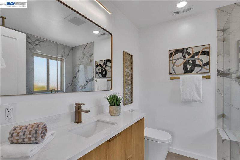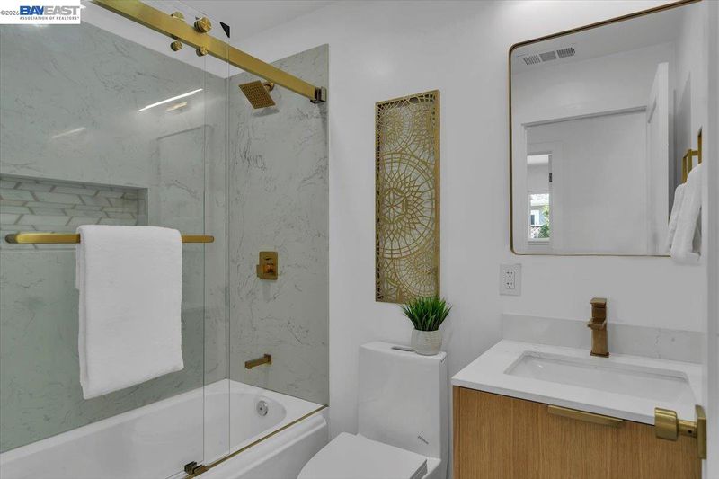 - Shower Over Tub, Solid Surface, Tile, Updated Baths, Dual Flush Toilet