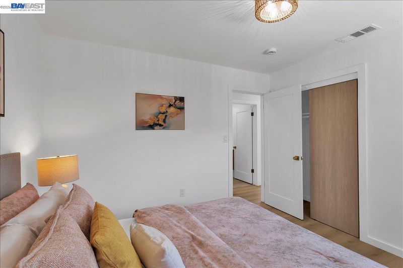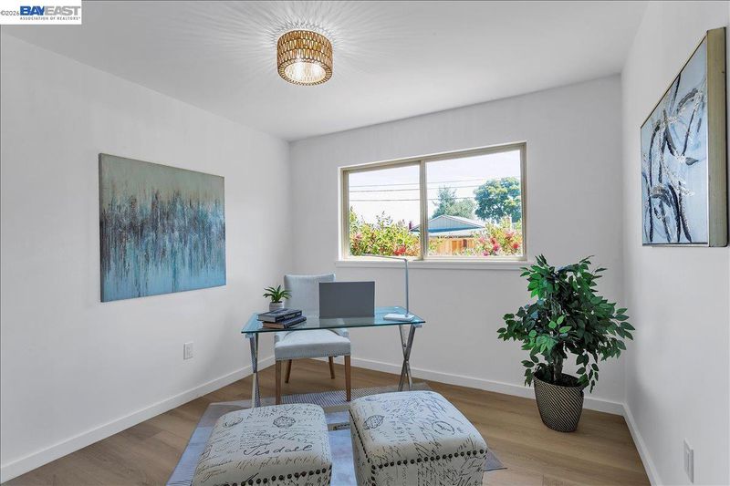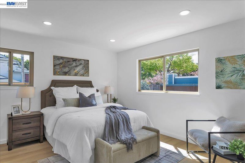 Single Level Modern Bayfarm Living. Slate blue exterior and glass panel front door set the tone. Inside, the home has been fully reworked with a wide-open layout and a floor plan that delivers the space and flow. The kitchen was moved to the rear, unlocking the entire main living area and creating an open concept. Front to back, the space feels bigger, brighter, and intentionally designed. Chef’s eat-in kitchen is stunning: white cabinetry, gold Calacatta quartz counters with full backsplash, a statement island, warm wood accents, brushed gold hardware, and all-new stainless-steel appliances. Attractive features include: plank flooring, baseboards, trim, interior doors w/hardware, front door, patio slider, fresh interior and exterior paint, LED lights, and modern fixtures that elevate every room. Both bathrooms have been completely transformed with quartz finishes and brushed brass hardware. Exterior lighting, new side yard fence with gate, new electrical subpanel, furnace and tankless water heater. Set on a large corner lot with room for an ADU. Outdoor space is ready for dining and entertaining. Attic adds storage, 2-car garage plus a 2-car driveway. Sharp.Modern.Move-in ready. Enjoy no HOA, distinguished schools, being close to airport, golf, groceries, Starbucks, and more.