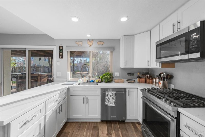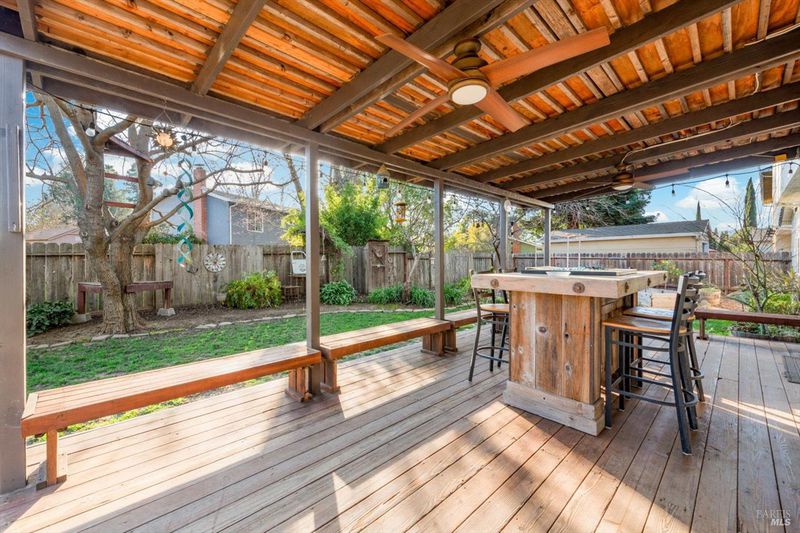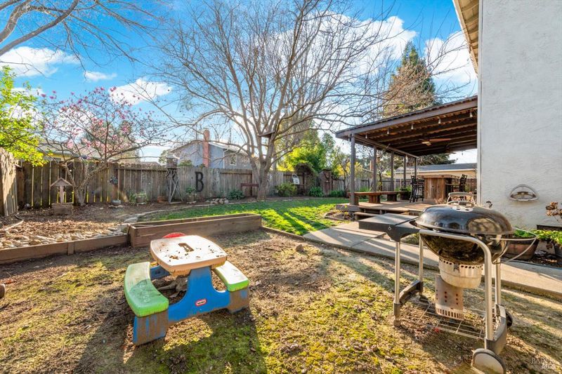Welcome home to Woodcreek, one of West Fairfield's most sought-after neighborhoods. This spacious 5-bedroom, 3-bath beauty offers over 2,300 sq ft and checks every box with three fully remodeled bathrooms and a remodeled kitchen featuring quartz countertops, stainless steel appliances, and a gas stove ready for weeknight dinners or weekend entertaining. Enjoy laminate flooring, newer energy-efficient windows, and plantation shutters throughout for a crisp, polished look. Major upgrades are already done, including a tankless water heater, newer HVAC system, Tesla solar system that is paid off, and a whole house fan for comfortable, efficient living. There is a roomy bedroom & full bath downstairs for a family member or guest to comfortably live in. The outdoor spaces are just as inviting: relax on the front yard patio, then head to the shady backyard and unwind on the wood deck made for BBQs, gatherings, and quiet evenings under the trees. Bring the toys and the hobbies, because this property delivers. You'll love the RV parking in two areas with one area providing a nice cover, plus an impressive 15x25 finished outbuilding with electric power, A/C, heat, finished flooring, and a window, perfect for a workshop, home office, studio, gym, or game room. Conveniently located near shopping, schools, and just a few miles from Travis Air Force Base. This is the kind of home that rarely comes along: upgraded, spacious, and loaded with lifestyle extras. Don't let this one get away.