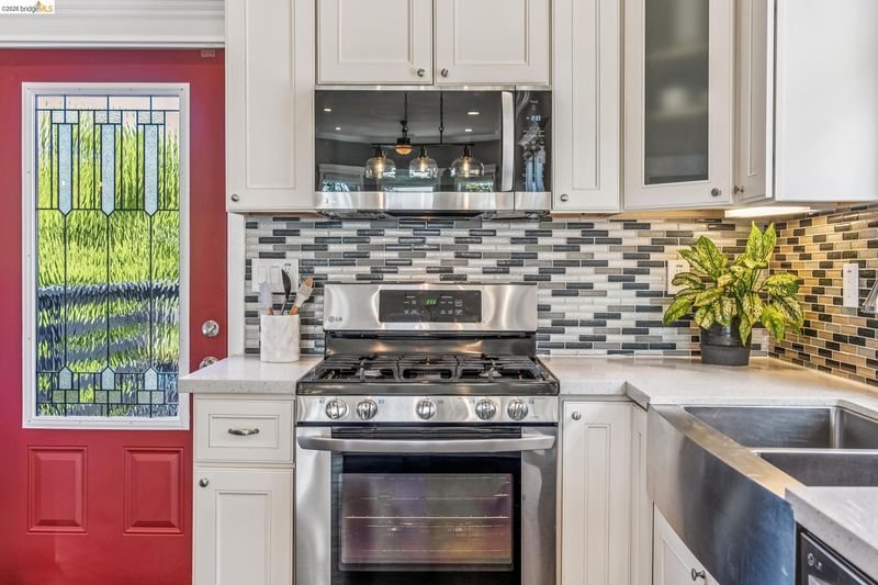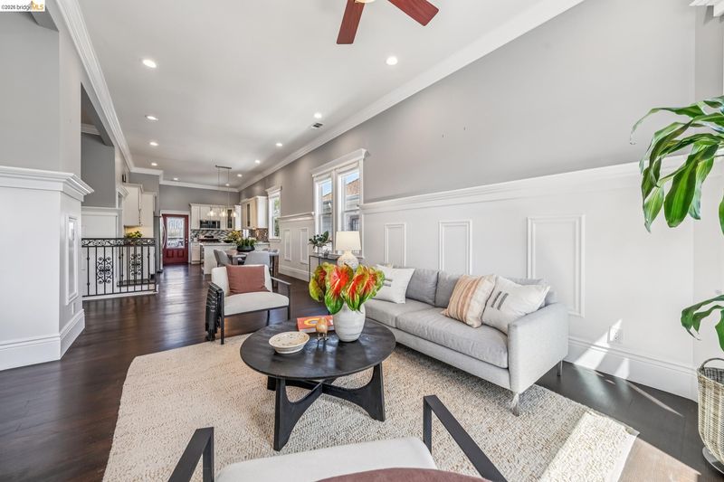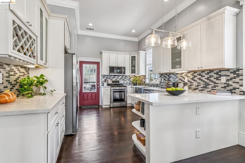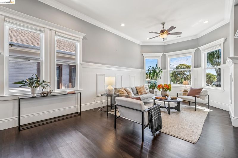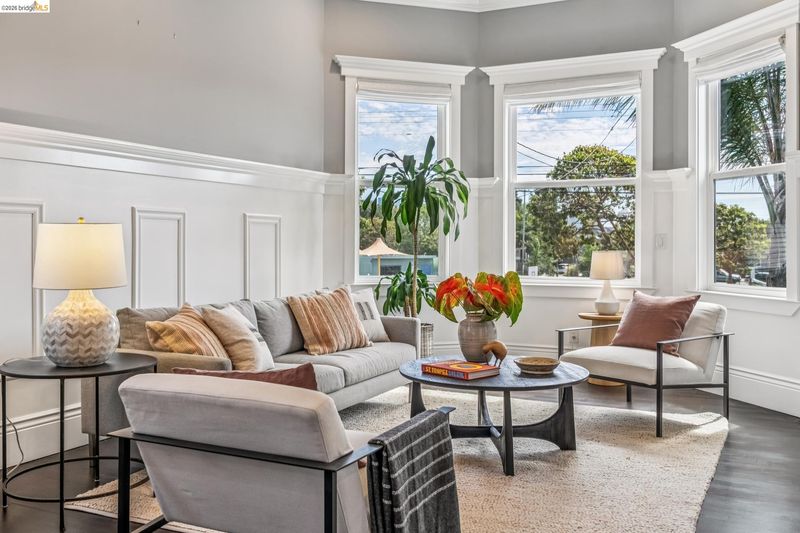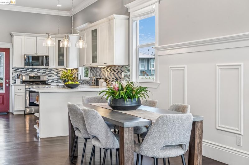 Stunningly imaginative Victorian renovation in Oakland’s Hoover Foster neighborhood! Dramatic open floor plan with 12 foot ceiling heights throughout the main floor. Exceptional workmanship exhibited by the custom millwork wainscoting and crown molding. The cook’s kitchen, separated from the dining area by a quartz-topped peninsula, is bedecked in period-appropriate cabinetry and lighting. The generous, well laid out living space is outfitted with 4 bedrooms and 3 luxurious baths with abundant use of stone and tile. Outdoor spaces include a deck adjacent to the kitchen, a peaceful patio outside the primary suite, and beautifully landscaped and hardscaped gardens, front and back!