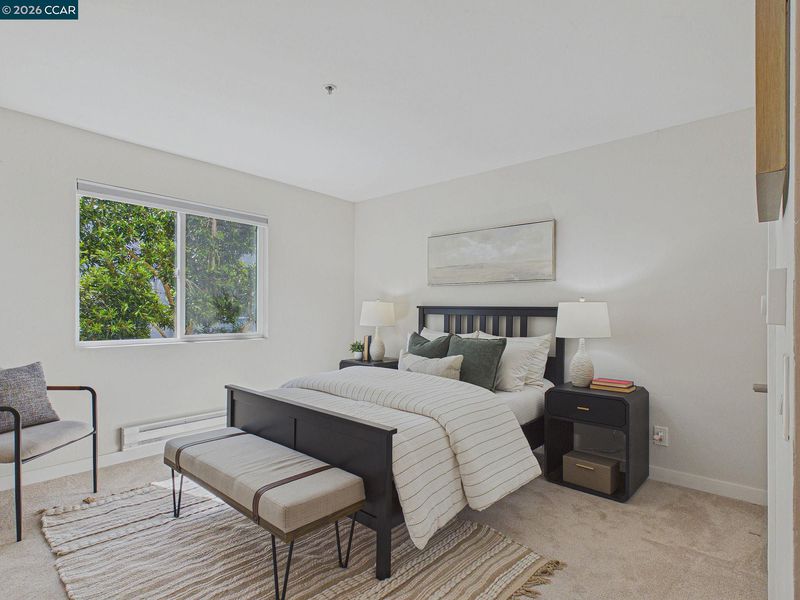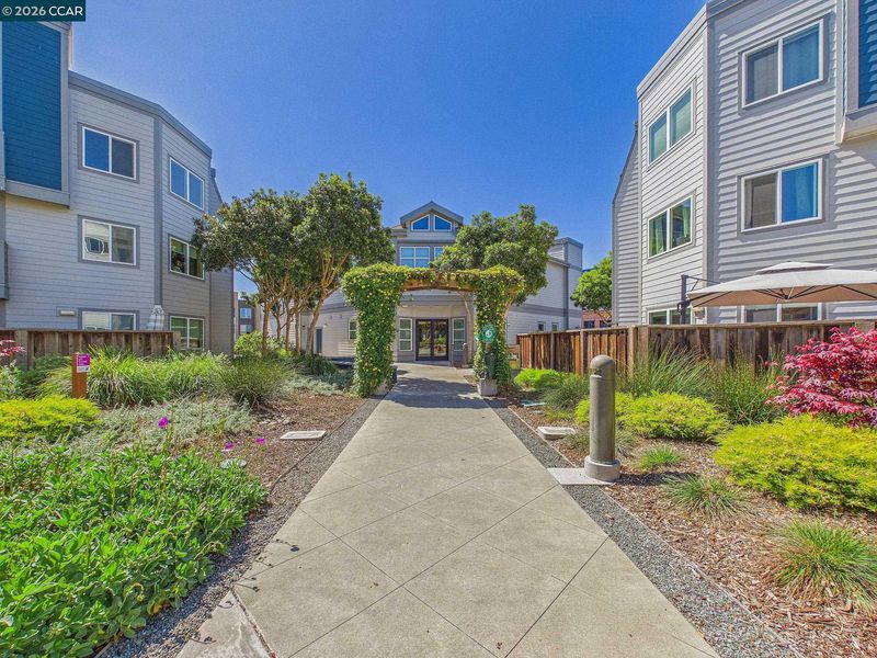 Welcome to your ideal urban retreat in the heart of Emeryville! This beautifully appointed 2 bedroom, 2 bath end-unit condo offers the perfect blend of comfort & convenience. Step inside to a thoughtfully designed layout with natural light pouring in from the newer dual paned windows. The updated kitchen with stainless steel appliances, stone countertop and brass hardware make meal prep enjoyable. Bedrooms are separated on each side of the home, creating privacy while walk-in closets offer great organization. Sip and snack on the private patio that overlooks a well-manicured courtyard that also has a storage closet. Skip visits to the laundromat with in-unit laundry! This home also includes two-car, secured covered garage spaces, an exceptional perk in this area. Beyond your front door, enjoy a plethora of community amenities: A fully equipped fitness center, swimming pool/hot tub, BBQ grassy field, massage/study rooms, clubhouse with billiard & ping pong table, kitchenette for optimal entertaining options. Located near many shopping centers, dining, UCB, movie theatres, BART, Emery Go-Round, I-80 and so much more. This is the perfect pet-friendly place to call home within a vibrant community! 3D Tour here: https://tour.giraffe360.com/6466de7b15524b66b320be5ff5665691