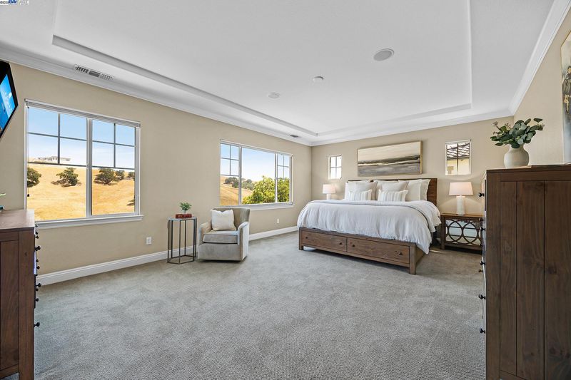 Welcome home to Danville’s highly sought-after Monterosso community! This stunning home sits on a premium lot with no rear neighbors and breathtaking hillside VIEWS. Nestled on a quiet street just steps from a beautiful community park, this 5-bedroom + office, 5-bathroom home offers a spacious open floor plan with soaring ceilings and abundant natural light. A full bedroom and bath on the main level provide flexibility for guests or multi-generational living. The luxurious primary suite showcases incredible views, and EVERY bedroom has a bathroom! The expansive 3-car tandem garage offers generous storage. The backyard is an entertainer’s dream—featuring a custom BBQ island, dining space with VIEWS, grass area, garden, fountain, and trampoline. Located within walking distance to top-rated Diablo Vista Middle and Creekside Elementary. Don’t miss this rare opportunity for space, privacy, and VIEWS in one of Danville’s best neighborhoods!