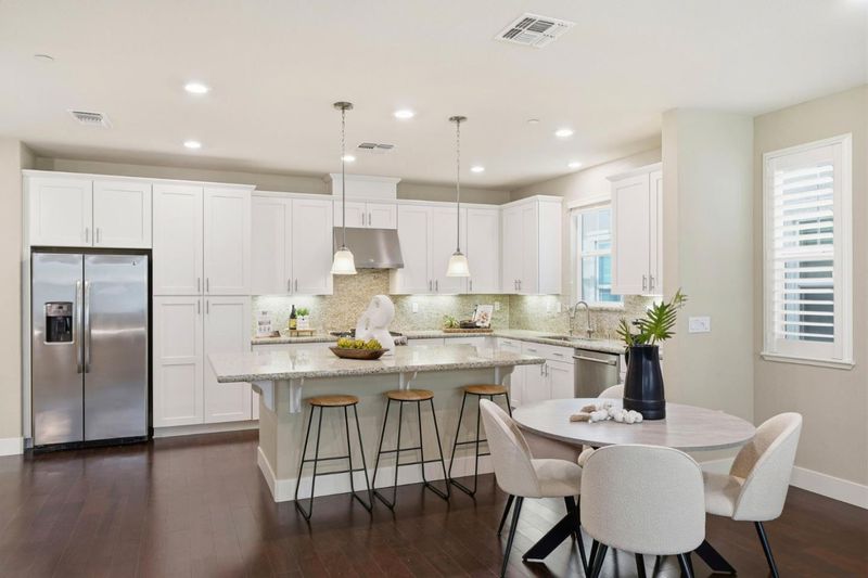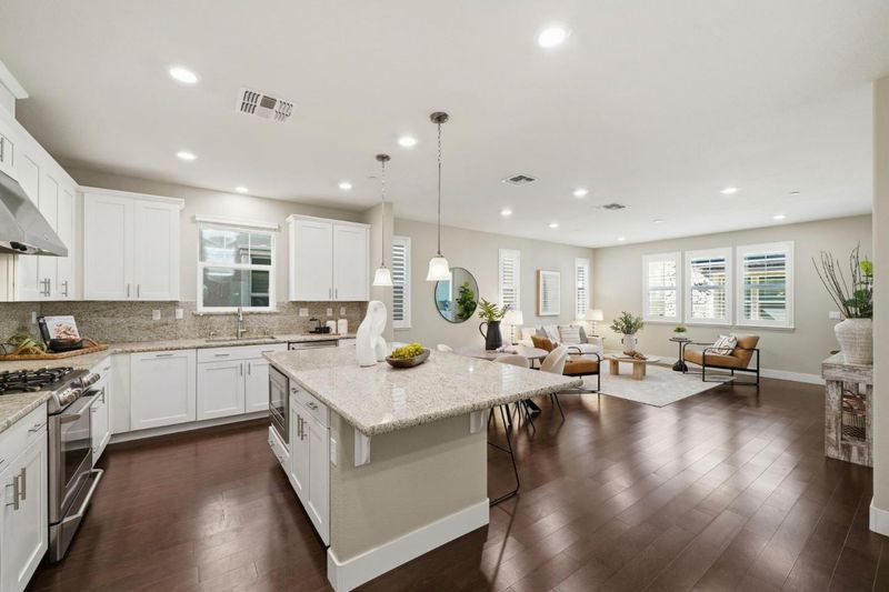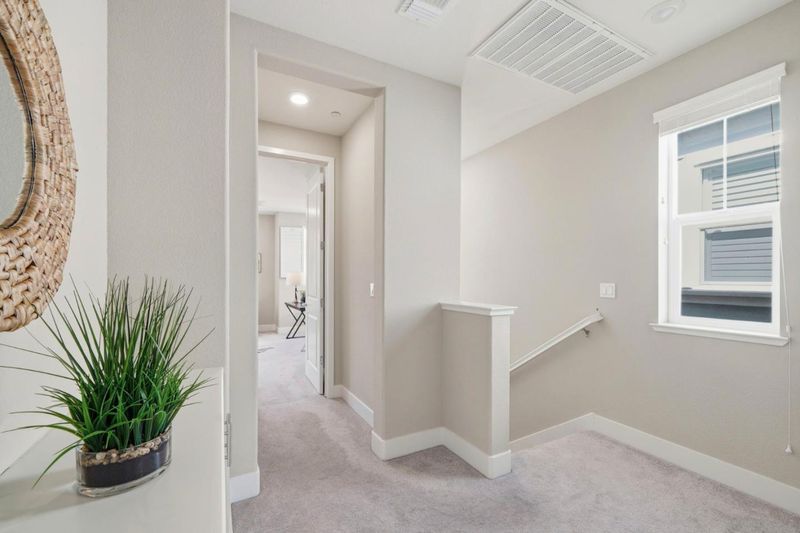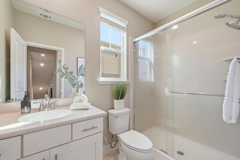 Embedded in Iron-Gate community, this 4-bedroom, 4-bathroom residence offers exceptional functionality and convenience for multi-generation living experience and luxurious touch. The thoughtfully designed layout features a private bedroom and full bath on the first level, while the second floor and main floor promotes an open-concept living area with hard-wood floors, gourmet kitchen, and another bedroom with a full bath. The top floor privately houses the primary suite and an additional bedroom. Bathed in natural sunlight through large windows, also equipped with shutters for privacy. Premium upgrades include designer cabinets, a water softener, and a private side yard with sleek, modern flooring. This home is also within walking distance to top-rated Cottonwood Creek K-8 and Emerald High School, and just moments away from Fallon Sports Park, two community parks, Target, Starbucks, and easy I-580 access. Parks and playgrounds within the community is a plus. This home is required with owned solar panels for energy efficient life style.