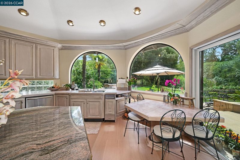 - Dishwasher, Oven, Refrigerator, Tankless Water Heater, Breakfast Bar, Counter - Solid Surface, Eat-in Kitchen, Disposal, Oven Built-in, Updated Kitchen