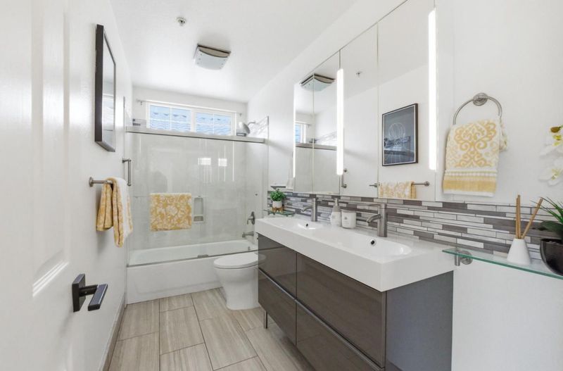 - Shower over Tub - 1, Double Sinks, Tile, Updated Bath, Half on Ground Floor, Primary - Oversized Tub, Primary - Stall Shower(s)