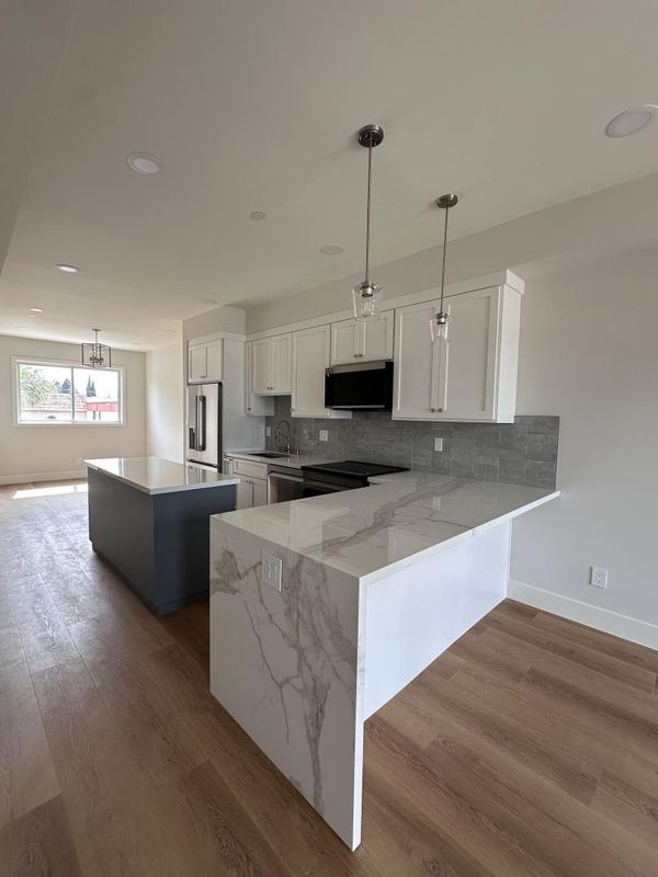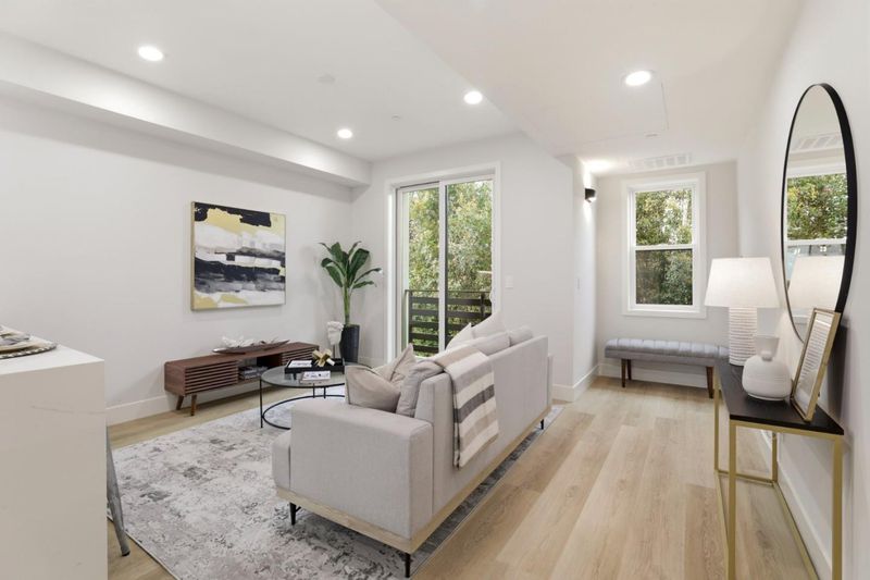 Gorgeous new construction in Campbell, near the Pruneyard and downtown with easy access to shopping, dining, and amenities. Highly regarded Cambrian schools. Bright interior with large windows, southern exposure, and three balconies. Main level features open living area. Kitchen includes polished porcelain countertops, peninsula and island, and custom cabinetry with ample storage. Brand-new Samsung and LG appliances: French door refrigerator, induction cooktop, oven, microwave, and dishwasher. Opens to living and dining areas for functional flow. Modern finishes throughout. Two bedrooms on the third level, each with its own bathroom featuring tiled finishes and quartz countertops. Washer/dryer on this level. Attached tandem 2-car garage with Level 2 EV hookup, storage, and epoxy flooring. Modern and energy-efficient features include Ring doorbell, mini-split HVAC, dual pane windows and solar options. Near parks, trails, restaurants, shopping, and local events, with access to major Silicon Valley employers and San Jose International Airport. Some photos are from model unit with similar floor plan; finishes may vary.