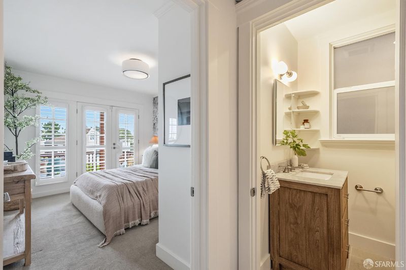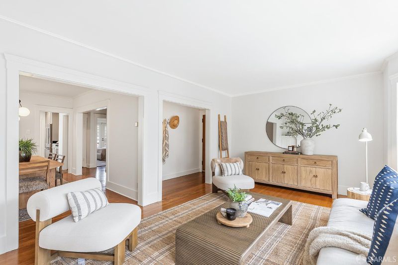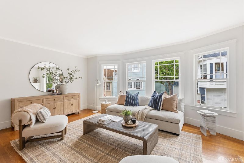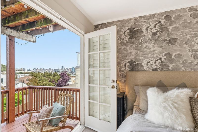 Perfectly positioned where Corona Heights meets Duboce Triangle, this 1930s Marina-style condo offers a thoughtful balance of modern updates and classic San Francisco charm. From the moment you step inside, a sun-drenched, south-facing living room sets the tone, with a gas fireplace and original built-ins adding warmth and character. The space opens naturally into a formal dining room and kitchen, creating a cohesive layout well-suited to both quiet evenings at home and easy entertaining. The kitchen features stainless steel appliances, generous cabinet storage, and a built-in work desk, making it well-equipped for both cooking and working from home. In-unit laundry adds a practical touch that's always appreciated in the city. The serene bedroom features French doors that open onto a private, exclusive-use deck with views of the downtown San Francisco skyline; a lovely place to have your morning coffee or wind down at the end of the day. Custom closet shelving keeps everything neatly organized. The thoughtfully updated bathroom includes a single vanity and a shower over tub. Additional highlights include garage parking and extra storage. A shared backyard with a fireplace and seating area is ideal for relaxing or gathering with friends. With a Walk Score of 97, this move-in ready home is just steps from the cafes, restaurants, and neighborhood amenities of both the Castro and Duboce Triangle, with multiple transit options only minutes away.