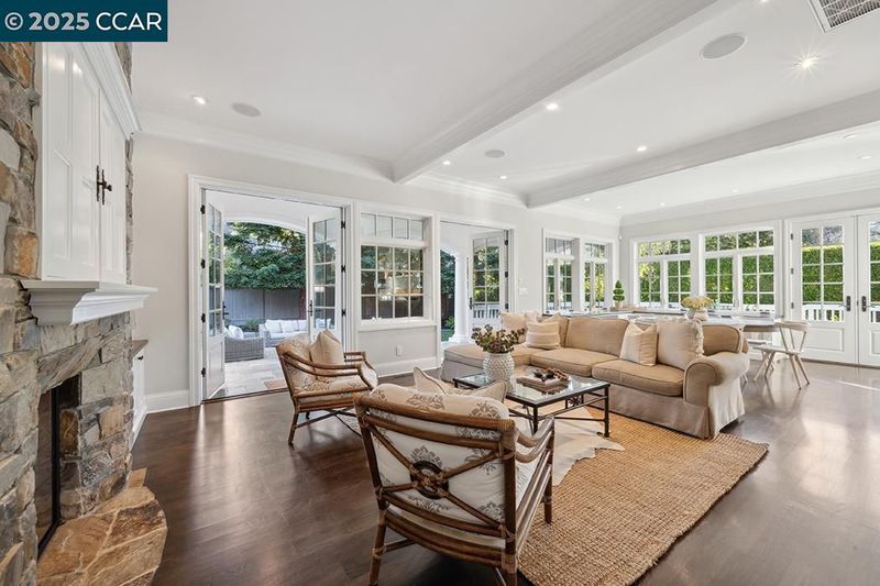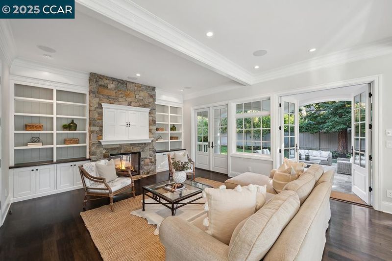 Experience this pristine Lafayette Woodlands retreat, where indoor elegance flows seamlessly to outdoor California living. French doors connect formal living and dining spaces to a charming veranda, creating an effortless entertainment flow that today's buyers crave. The sun-drenched great room anchors family life with a gourmet kitchen designed for multitasking parents and homework sessions. Premium finishes and thoughtful storage solutions elevate everyday living, while the seamless connection to outdoor spaces invites California's indoor-outdoor lifestyle. Weekend entertaining shines with the outdoor pizza oven and multiple gathering spaces across the expansive, level lawn—a coveted rarity in today's Lafayette market. The versatile bonus room offers amazing flex space that can transform to suit your needs—whether as a playroom, executive office, gym, second family room, or potential 5th bedroom (easily converted with its location across from a full bathroom). Live the dream on this quiet, sought-after street where neighbors become friends and spontaneous front-yard conversations lead to memorable backyard dinners. Watch as children play freely in a community where families still prioritize connection. Kids travel along neighborhood paths to top-rated schools (K-8).