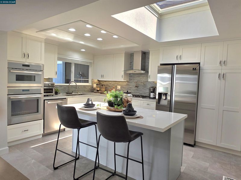 - Dishwasher, Gas Range, Microwave, Oven, Refrigerator, Breakfast Bar, Counter - Solid Surface, Eat-in Kitchen, Disposal, Gas Range/Cooktop, Kitchen Island, Oven Built-in, Skylight(s), Updated Kitchen, Other