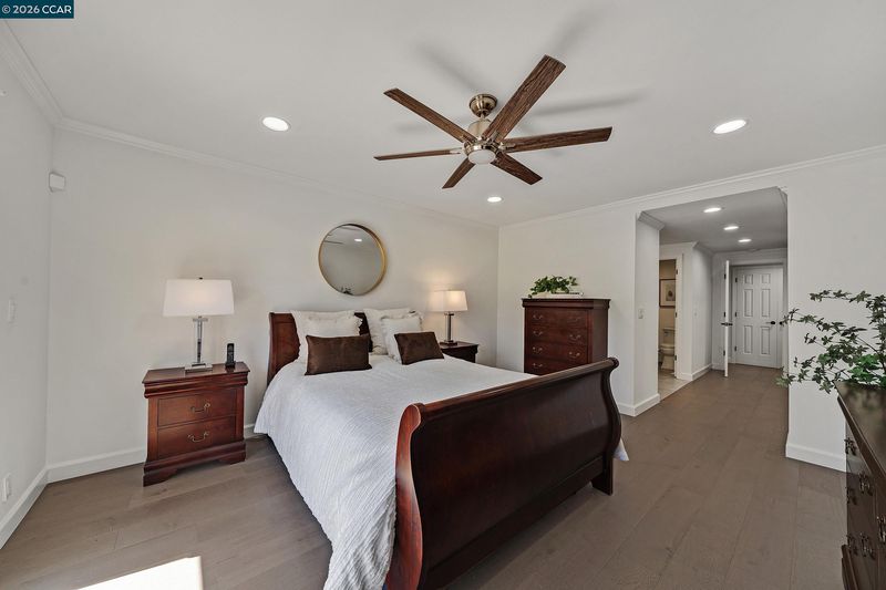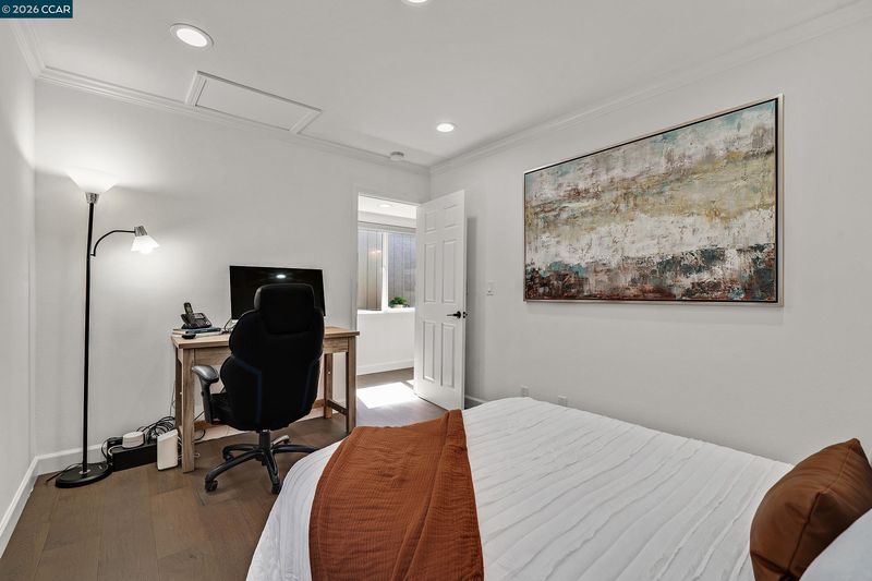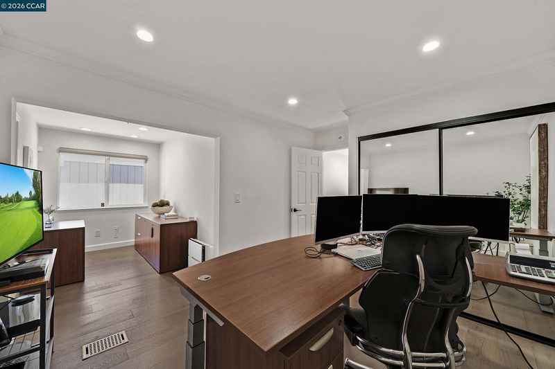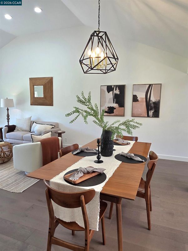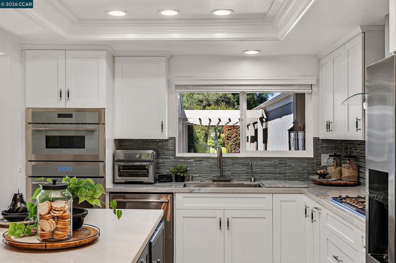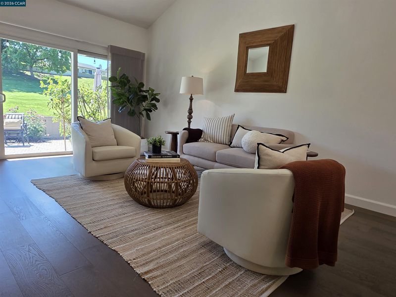 Welcome to 692 Silver Lake Dr., Danville, a beautifully updated 3 bedroom, 2 bath single story townhouse offering 1,630 square feet of thoughtfully designed living space on a 3,600 square foot lot, featuring fresh paint, landscaping, engineered hardwood floors, and new tile throughout. Inside, the open concept kitchen showcases stainless steel Thermador appliances including a gas cooktop and combination microwave, high end sink, faucet and pot filler, hot water dispenser, wine refrigerator, new cabinetry with pull out shelving, tile backsplash, quartz counters, and a skylight. Mostly all Hunter Douglas shades are remote controlled. The space flows into a light filled living area with vaulted ceilings, recessed lighting, and abundant natural light. Oversized bedrooms, office space, mirrored closets, a Lennox two stage AC with UV system, and a separate laundry room add comfort. Bathrooms feature double vanities and a luxurious primary shower. A two car garage is complemented by 16 REC solar panels, Tesla battery, Span panel, and EV charger. Tucked inside a gated community with 5th hole golf course views near the country club, this home offers serene living with a charming courtyard entrance, private terrace, complimented by a pavered back patio perfect for relaxing or entertaining.