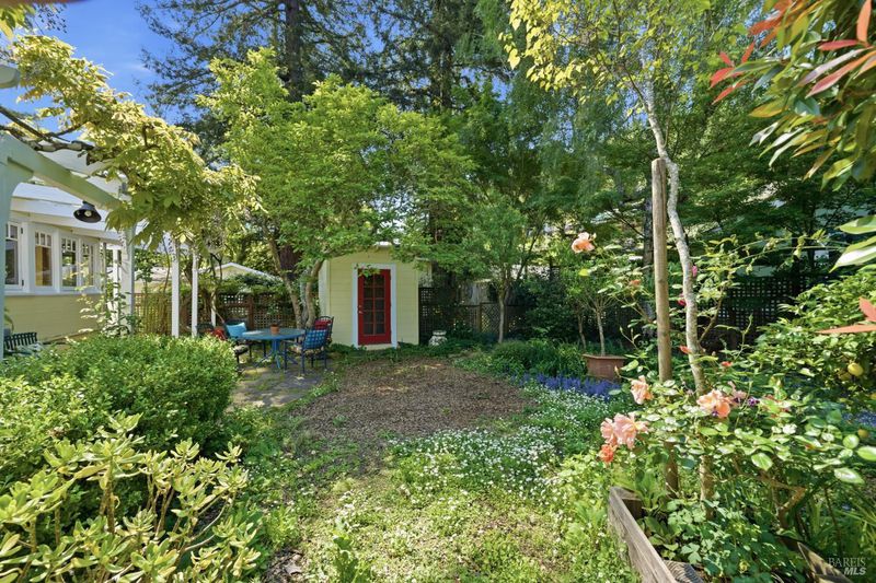 This historic gem is the first home built in 1921 in Fairfax's Manor neighborhood, located in the flats near vibrant downtown Fairfax. Enter through the garden gate at 7 Marin Rd. and follow the flagstone pathways to the main house. Step through the cherrywood front door into this charming, light-filled 105-year-old home. The sellers have lived here for 40 years, and there has been only one previous owner. The living and dining rooms feature original red and white oak floors, along with original single-pane windows in the living room, dining room, and kitchen. Dual-pane windows have been installed in the bedrooms. 7B Marin Rd. is the ADU, formerly a garage and print shop, now a compact 1-bedroom, 1-bath cottage with a kitchenette and a new shower. Manor Elementary School is nearby. The property is rich with landscaping, including roses, wisteria, freesias, bleeding hearts, two stunning redwoods, magnolia, Meyer lemon, camellias, and redbud trees. There are three storage sheds; one, built in 2022, is finished with electricity and ceiling insulation. This 10' x 12' structure can serve as an office or art studio, while the two smaller sheds are also equipped with electricity.