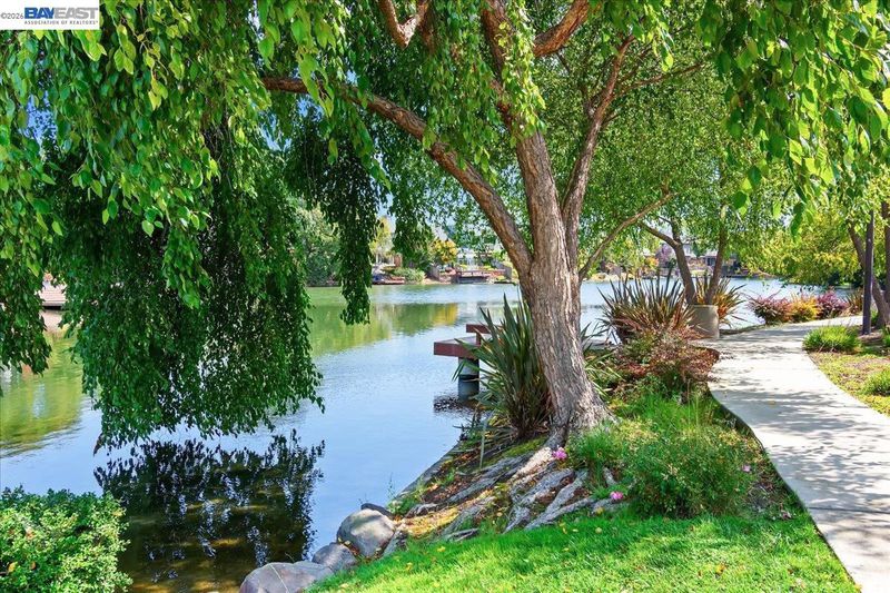 UGE Price reduction! Discover a one-of-a-kind, move-in ready gem. This exceptional home, featuring three bedrooms and two fully remodeled bathrooms, is uniquely positioned to offer spacious privacy from neighboring units. The amenities of this gated community include a pool and spa, enhanced by walking paths winding among the lagoons leading to the bay shore and park. Access to the home entrance is bordered by beautiful pots, and once inside, the airy and bright interior is framed by new windows that invite the outside in. The primary suite is a tranquil retreat with sweeping and serene lagoon views and the East Bay hills. The double patio doors open onto a generous balcony, perfect for relaxation and breakfasts al fresco. The second bedroom offers a cozy escape with its own fireplace, tall ceiling and corner windows. The third bedroom, customized with wrap-around closet cabinetry, serves as a flexible office space or guest room. Remodeled kitchen and baths top off this gorgeous property.