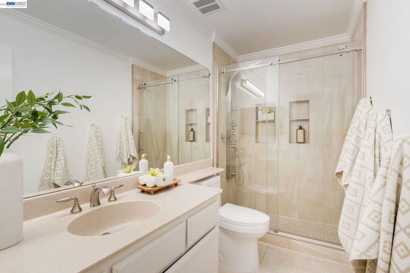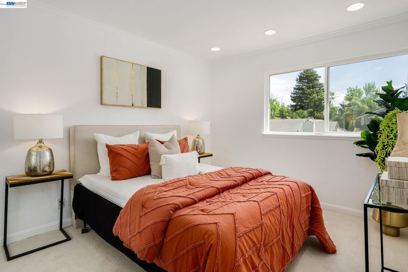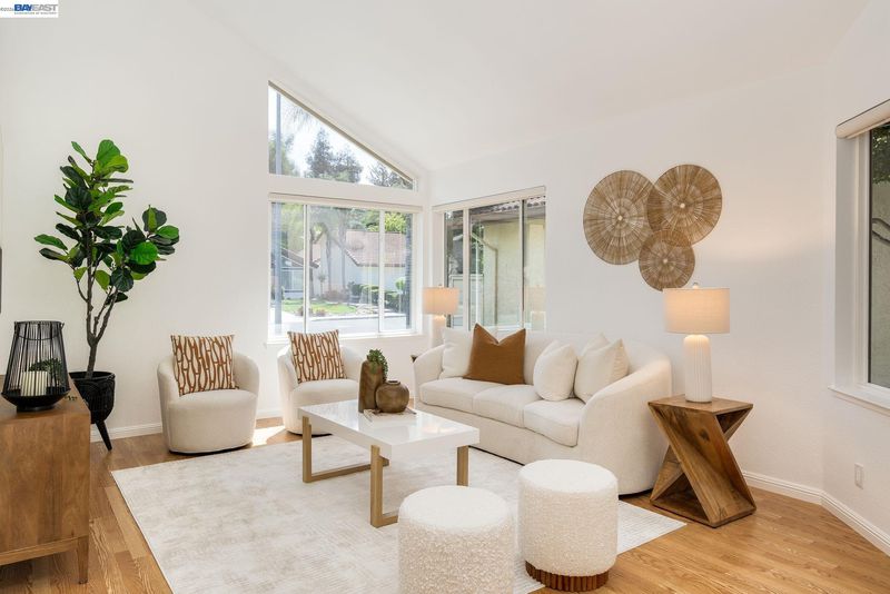 Welcome to your own private retreat. This beautifully updated home blends comfort, style, and functionality—starting with a low-maintenance artificial turf front yard and continuing throughout. Step inside to a bright, open floor plan with vaulted ceilings and abundant natural light. The home features fresh interior paint, brand-new luxury carpet, and an updated A/C system for year-round comfort. The refreshed kitchen includes stainless steel appliances and opens seamlessly to the main living areas—ideal for everyday living and entertaining. Hardwood flooring downstairs adds warmth and contrast. Both bathrooms have been updated with spa-like multi-jet shower systems, creating a true resort-style experience. Secondary bedrooms feature European-style shutters for full light control, and one offers a built-in wall bed—perfect for a home office or flexible space. The backyard is built for entertaining with a spacious patio and built-in barbecue area. Move-in ready and designed to impress.