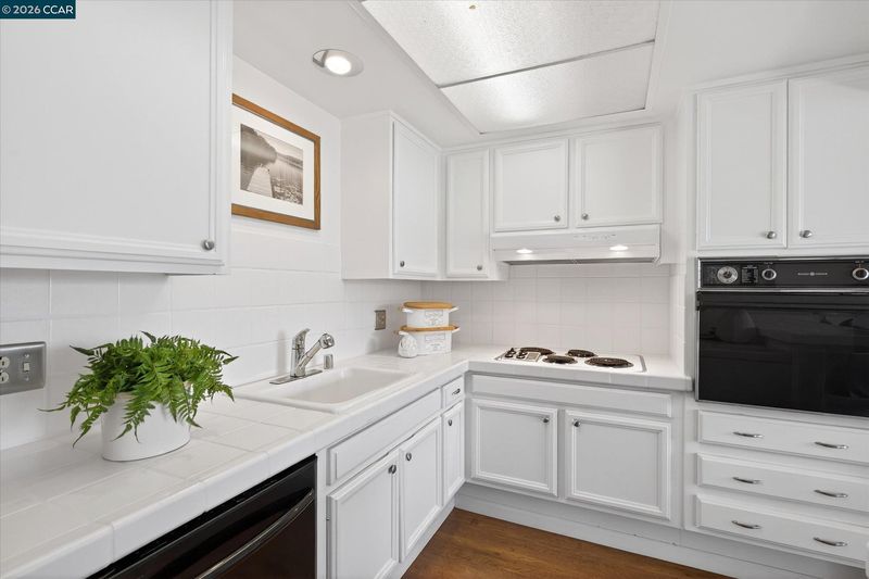 - Dishwasher, Electric Range, Dryer, Washer, Gas Water Heater, Tile Counters, Electric Range/Cooktop, Disposal