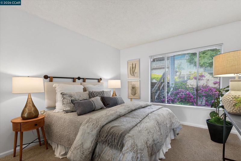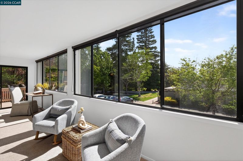 Step into this warm and inviting Sonoma Wrap co-op designed to maximize both comfort and lifestyle. The expanded living and dining room creates a bright and spacious gathering area, while the covered side veranda offers the perfect setting for outdoor entertaining, relaxing, or enjoying your own container garden retreat. Large dual-pane windows frame serene views of surrounding hills and mature trees, bringing natural light and a sense of tranquility into the space. For added comfort and privacy, the living room wall has been enhanced with special sound-proof drywall. Recent updates include stylish laminate flooring in the entry and kitchen, mirrored closet doors, and full-size stacked washer and dryer. Just steps away, the carport offers parking and additional storage cabinets. You’ll also enjoy close proximity to the Hillside Clubhouse, featuring a swimming pool, table tennis, and bocce ball—perfect for staying active and social. Move-in ready so you can start enjoying the active Rossmoor lifestyle!