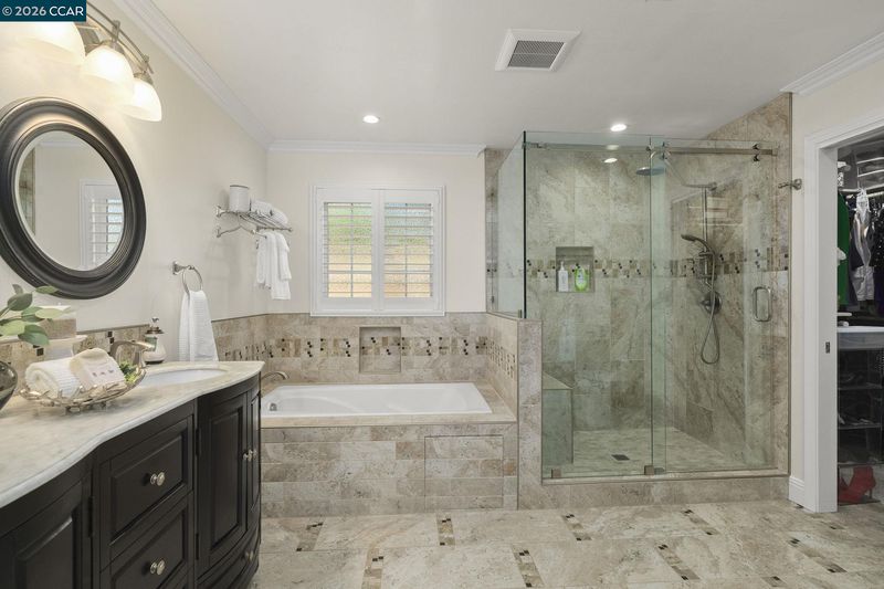 Stunning Single-Story in Valley Trails with over $300K in upgrades! Perfectly positioned on a peaceful court just steps from Valley Trails Park, this beautifully remodeled home blends elegance, comfort, and everyday convenience. Sunlight fills the open spaces through plantation shutters, highlighting hardwood-style floors, crown molding, and recessed lighting. The gourmet kitchen with granite countertops, stainless steel appliances, and a butler’s pantry flows seamlessly into the family room, which features wired surround sound speakers in the ceiling, an upgraded electric fireplace, and a slider to the backyard, creating the perfect setting for gatherings. The spacious primary suite offers a walk-in closet and spa-inspired bath with dual sinks, a Pure Air Jacuzzi tub, and a walk-in shower. Outdoors, enjoy stamped concrete, multiple patios, a freshly power-washed fence that looks brand new, built-in gazebo with lights and a ceiling fan — ideal for alfresco dining or relaxing under the stars. Peace of mind comes with an owned solar system, reinforced foundation, French drain, smart irrigation, owned alarm system and Ring doorbell. Award-winning Pleasanton schools are within a mile. No HOA.
