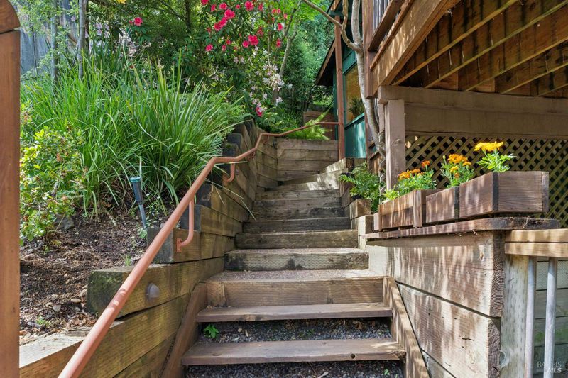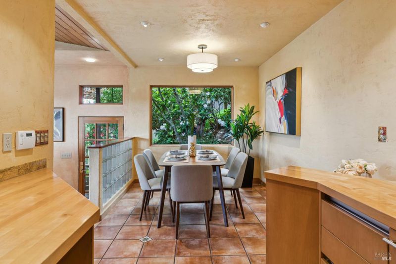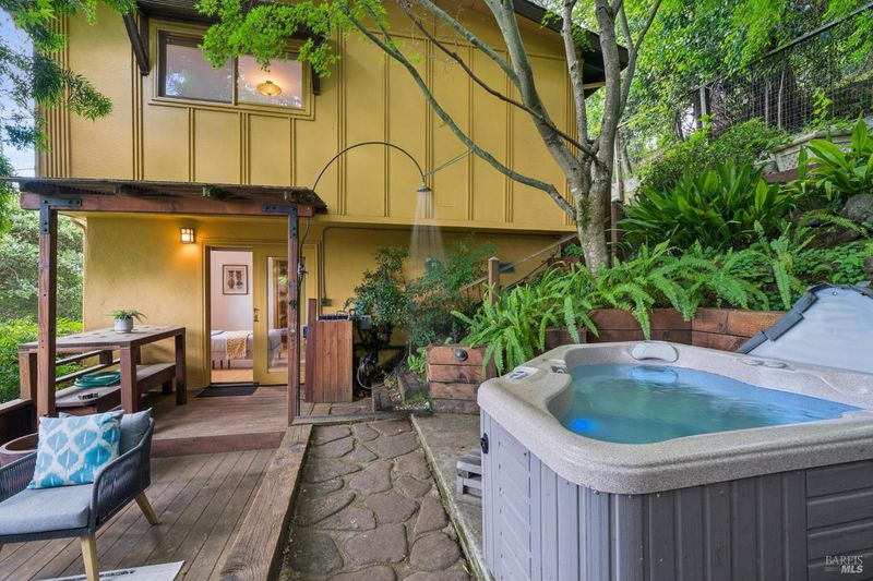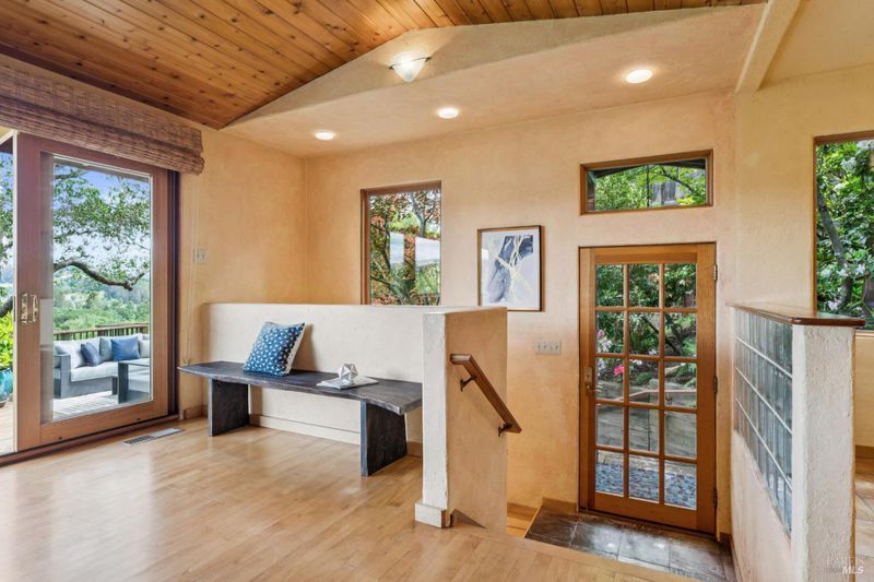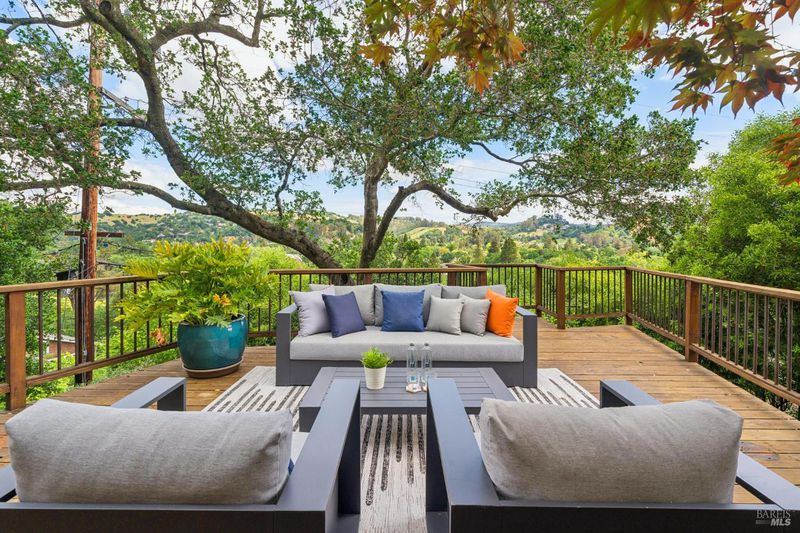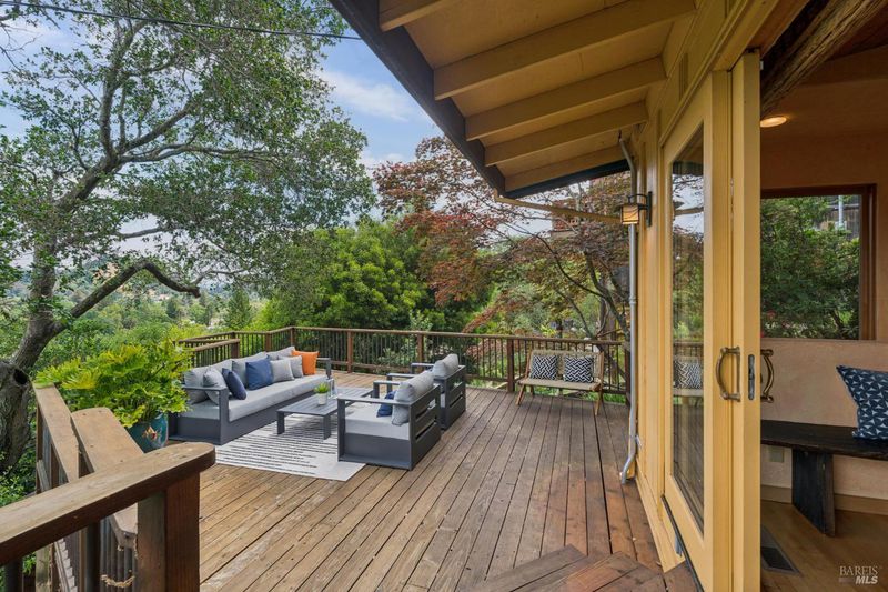 Beautifully maintained 3BD/2BA San Anselmo home offering 1,659 SF (per tax records) with scenic valley views enjoyed from the living room, expansive deck, and multiple windows throughout. The thoughtfully designed two level layout features the main living area with 2BD and 1BA upstairs, while the lower level includes the third bedroom and a flexible space ideal for a family room, office, or potential 4th bedroom. Each level provides direct outdoor access, enhancing indoor outdoor living. The interior showcases a Mediterranean inspired aesthetic with hardwood floors, hand crafted mosaic tile accents, and a wood burning fireplace. The kitchen is both functional and inviting with a gas range, extra deep sink, ample storage, and a cozy sitting area. Outdoors, a serene side yard retreat features a spa, outdoor shower, and custom artist sink. Updated windows and a newer roof add value and comfort. Ideally located on a quiet dead end street near schools, Good Earth Market, local shops, and access to hiking and biking trails.