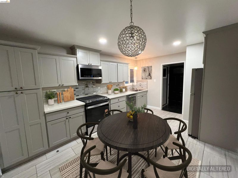 - Dishwasher, Electric Range, Free-Standing Range, Refrigerator, Stone Counters, Eat-in Kitchen, Electric Range/Cooktop, Disposal, Range/Oven Free Standing, Updated Kitchen