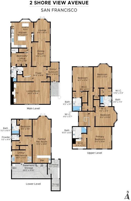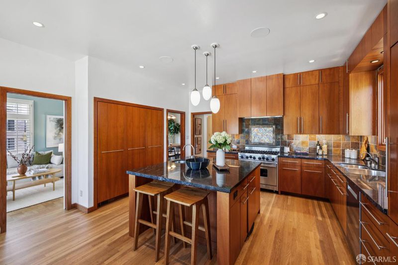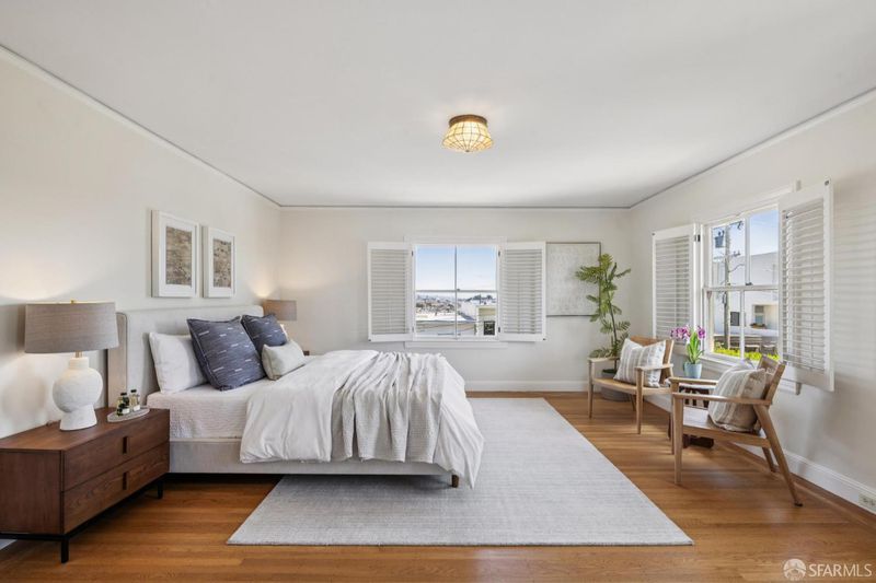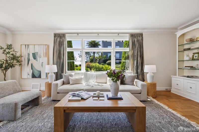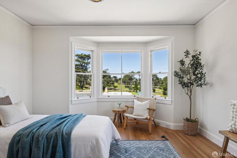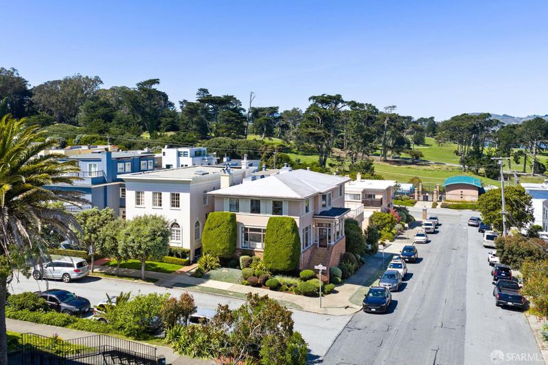 Set in the special enclave of Lincoln Manor, one of the city's coveted residential parks, 2 Shore View is unrivaled in its scale, breathtaking views, and the meticulous care it has received over the years. Homes with such a gracious floor plan seldom become available featuring six bedrooms (with four bedrooms on the upper level) and five and a half bathrooms. The elegant entry foyer showcases a stunning main staircase adorned with custom Frank Lloyd Wright inspired stained glass artfully illuminating the center of the home. The grand living room is enhanced by a fireplace flanked by bespoke bookshelves and the elegant formal dining room leads you to the home's kitchen thoughtfully designed for both functionality and entertaining boasting exquisite wood cabinetry and a layout that facilitates social gatherings alongside effortless meal preparation. Complete with a 6-burner gas range, wood paneled subzero refrigerator, center island with counter seating and wine fridge, plus a charming window seat. The adjacent den provides a comfortable, casual setting ideal for movie nights with access to an expansive deck overlooking Lincoln Park Golf Course and a sliver of a view of the Golden Gate Bridge. Enjoy downtown San Francisco at sunrise and the majestic tree line of Lincoln Park during the golden hour. Ascend the stairway to the bedroom level where you will find two en-suite bedrooms with walk-in closets and radiant floor heating in each bathroom. There are two additional bedrooms that share a jack and jill bathroom and ample closet space for every bedroom and two linen closets off the main hallway. The ground level of the home features a sixth bedroom with en-suite bathroom and an additional half bathroom off the hallway. There is wonderful game room and original bar that opens to the home's charming patio. A detached two car garage and access to a private alley are added bonuses that are included with this special home. Lincoln Manor was built by the S.A. Born Building Company (builders of West Clay Park and Sea Cliff) and abuts Lincoln Park, the Legion of Honor, Land's End, and is close to Sea Cliff and the Balboa Street shopping district. This is a must see once-in-a-generation opportunity!
