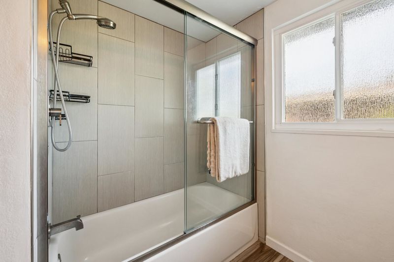 Shower Over Tub, Solid Surface, Tile, Tub, Updated Baths, Closet, Window