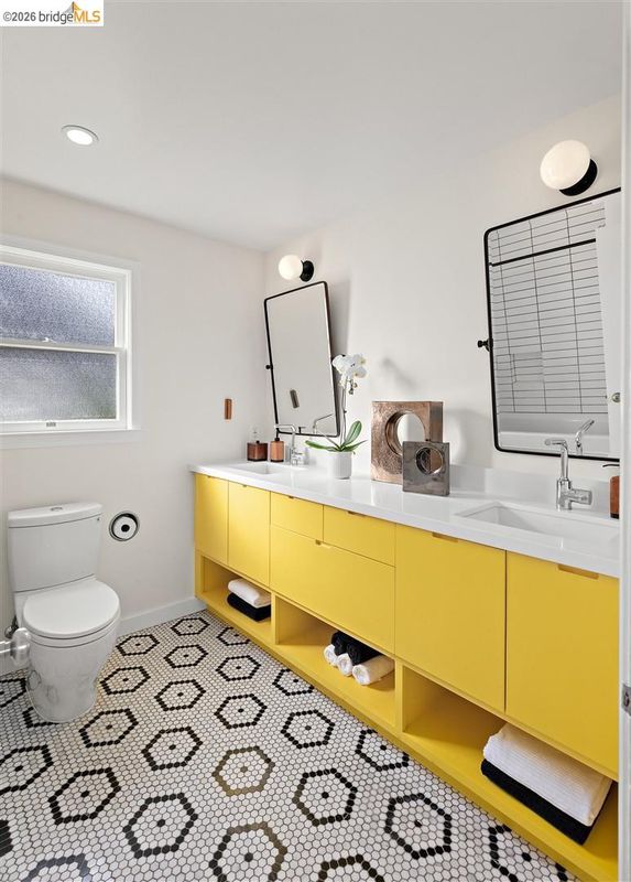 Located on a quiet, tree-lined street in Upper Thousand Oaks, this striking 5-bedroom, 4.5-bath home offers magnificent views. Timeless architectural details—hardwood floors, beamed ceilings, built-ins, and alcoves—are complemented by modern updates. Large living and dining rooms and a well-appointed kitchen create an easy flow for relaxation and entertaining. A graceful, curved staircase leads to the first landing, where an ensuite bedroom offers comfort and privacy. Upstairs, the primary suite features an updated bathroom and a sitting room opening to a deck with Bay views. Two additional bedrooms, a playroom, and an updated bathroom complete the upper level. The lower level includes a large family room with wet bar, ensuite bedroom, and garden access. Laundry, storage, and a two-car garage with interior access add functionality. The backyard is a private oasis with mature landscaping and room to garden, lounge, or play. Upgrades include electrical, helical pier foundation, Andersen windows, and solar. Close to Arlington shops, Solano Avenue, transportation, and Tilden Park. BESO energy score 2.