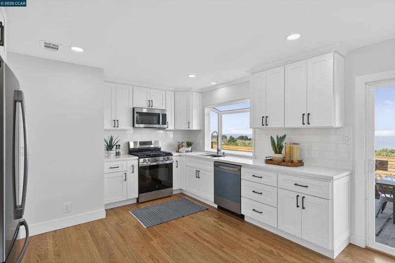 Beautiful completely updated inside and out, ranch-style contemporary home located in the desirable Belfair neighborhood. This light-filled residence offers breathtaking panoramic bay views and an abundance of natural light through an oversized front window. The completely remodeled interior features smooth wall texture, recessed LED lighting throughout, all solid-core doors, refinished original hardwood floors, a spacious pantry, and a decorative electric fireplace. The open layout is complemented by all new upgrades including a new roof, dual-pane windows, new water heater, new sewer lateral. Enjoy beautiful, low-maintenance landscaping with brand-new fencing and a hardscaped patio ideal for outdoor living. Conveniently situated within a short walk to the Bay and Old Town Pinole, and close to schools, shopping including Sprouts, Peet’s Coffee, and Trader Joe’s. Easy access to public transportation and major commute routes makes this move-in-ready home a perfect blend of comfort, style, and location. Clear pest and home inspection. Must see in person!