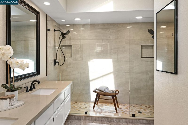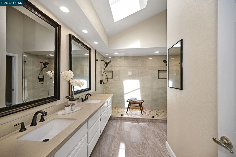 - Shower Over Tub, Skylight(s), Solid Surface, Updated Baths, Double Vanity, Stone