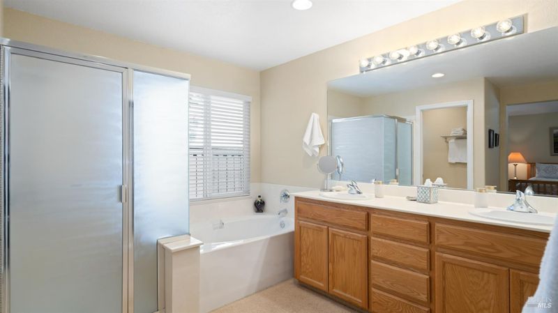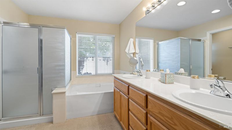 - Double Sinks, Shower Stall(s), Tub, Walk-In Closet, Window