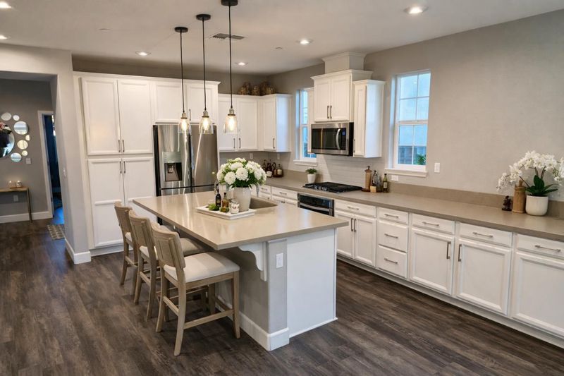 - Countertop - Quartz, Dishwasher, Island, Microwave, Oven Range - Gas, Refrigerator